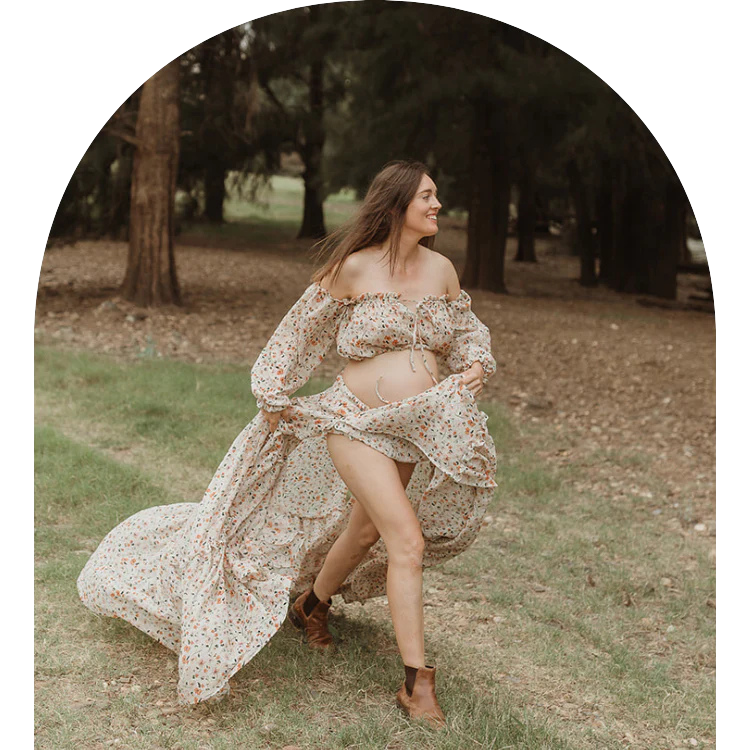 If you love soft, delicate florals, this two-piece gown is for you. Light, airy, and effortlessly elegant, it’s perfect for maternity shoots, family photos, or just when you want to feel extra special.
